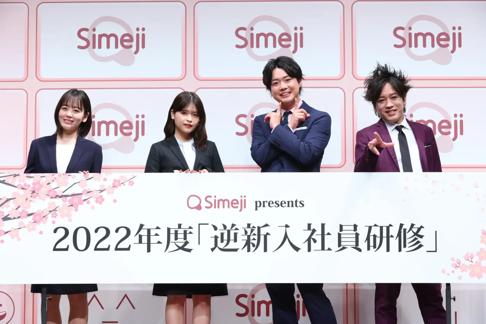 Simeji presents 「逆新入社員研修」発表会にて、ぺこぱさん、伊原六花さん、景井ひなさんにご出演いただきました。